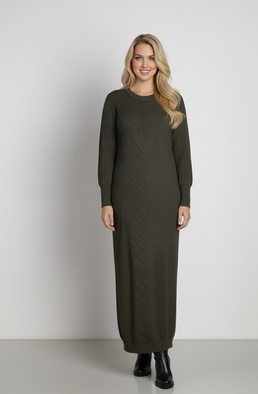 ZYF Aygen Knitted Winter Dress Green