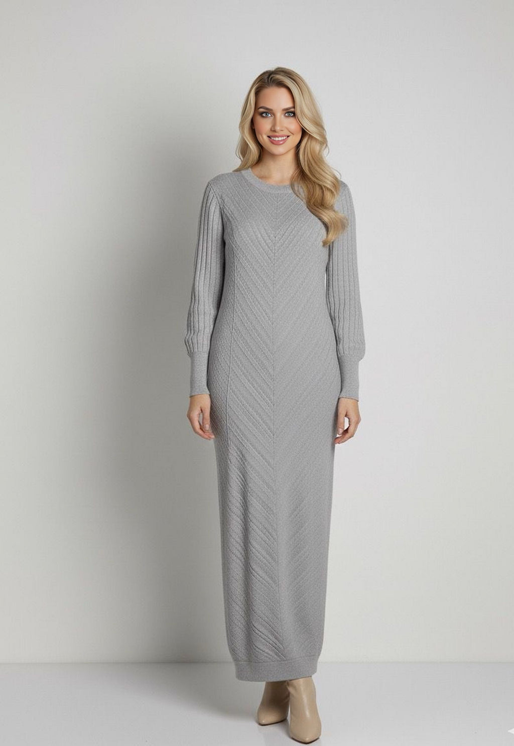 ZYF Aygen Knitted Winter Dress Light Gray