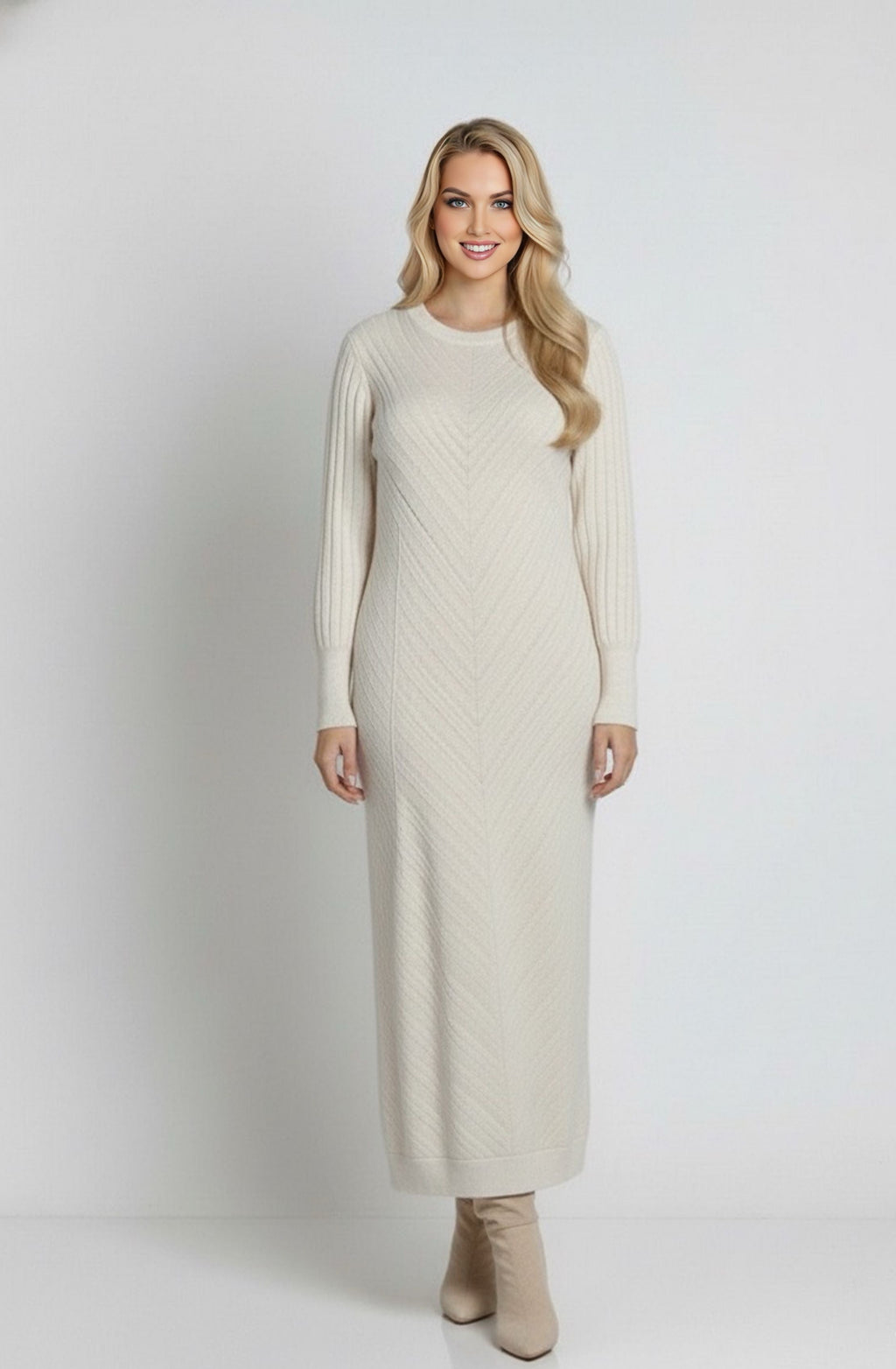 ZYF Aygen Knitted Winter Dress Ecru