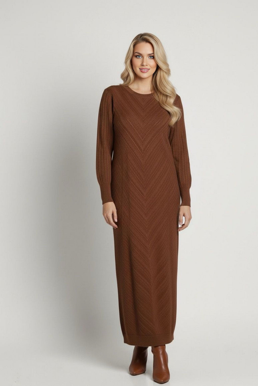 ZYF Aygen Knitted Winter Dress Brown