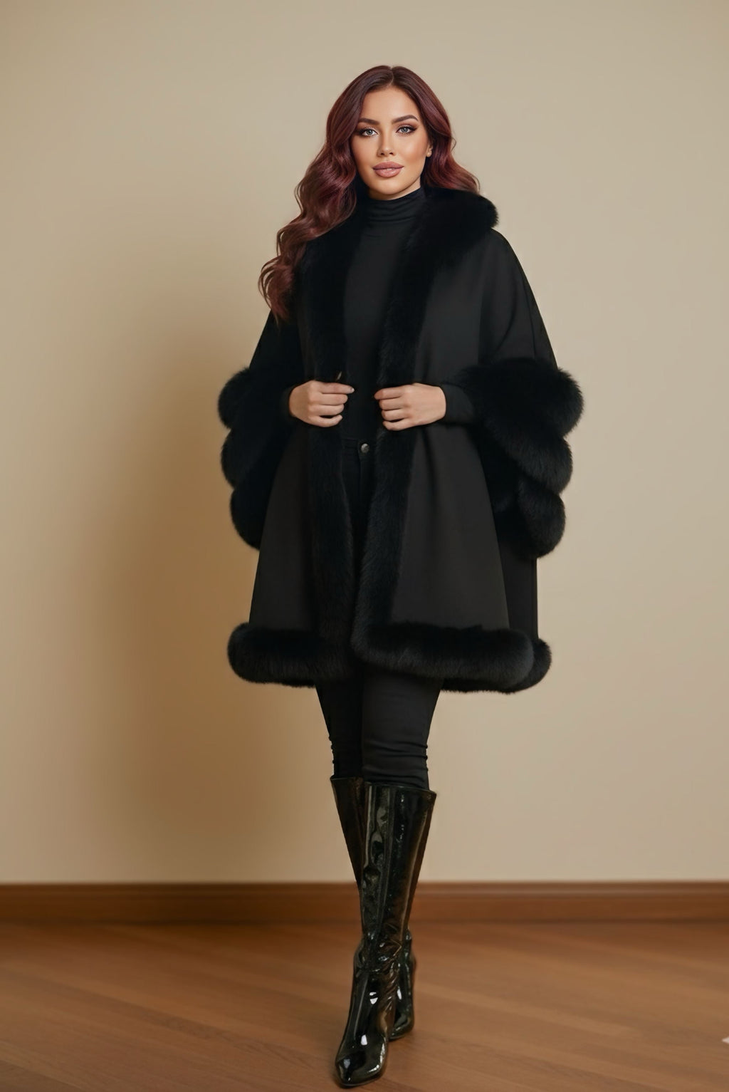ETC Real Fur Pancho Black