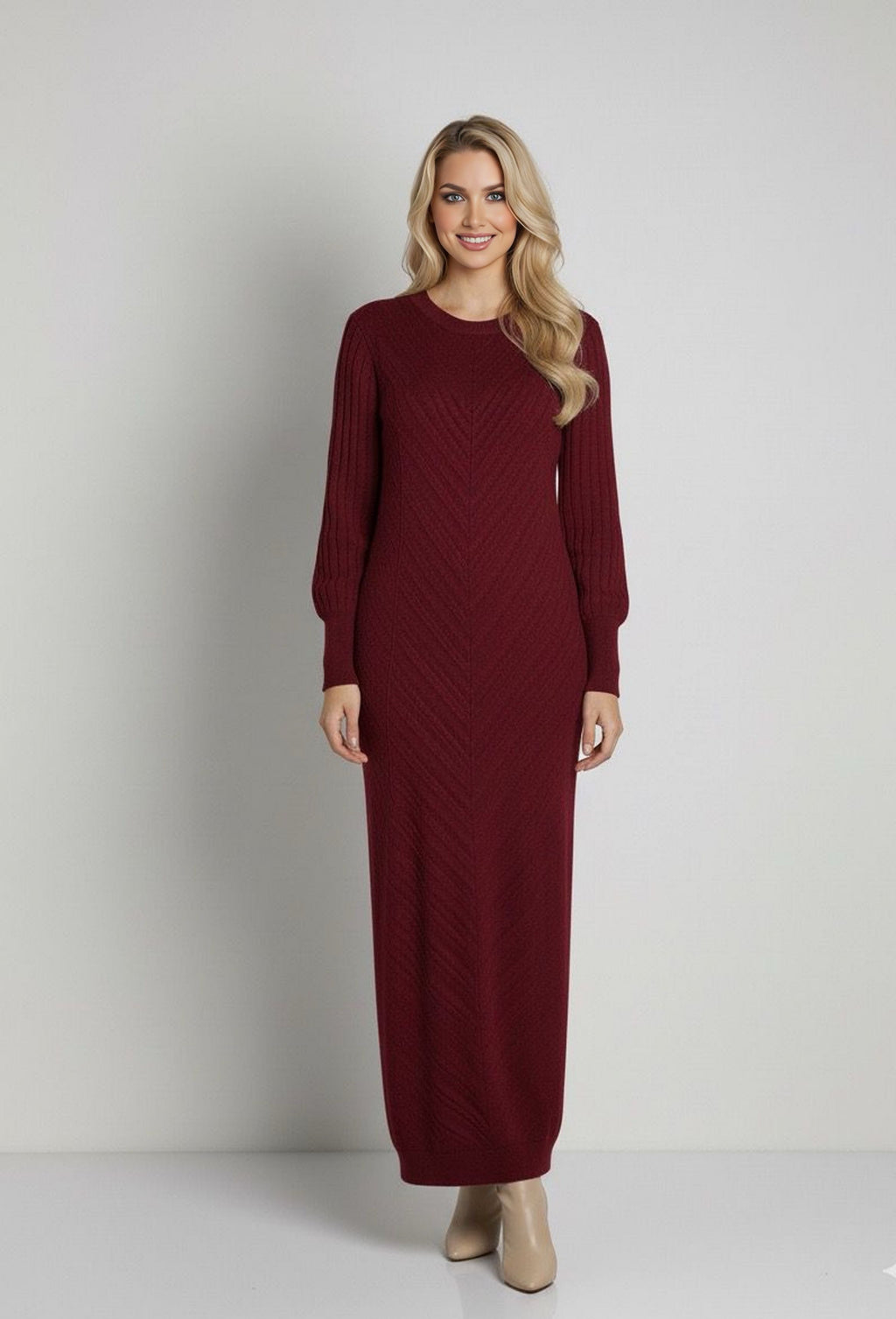 ZYF Aygen Knitted Winter Dress Burgundy