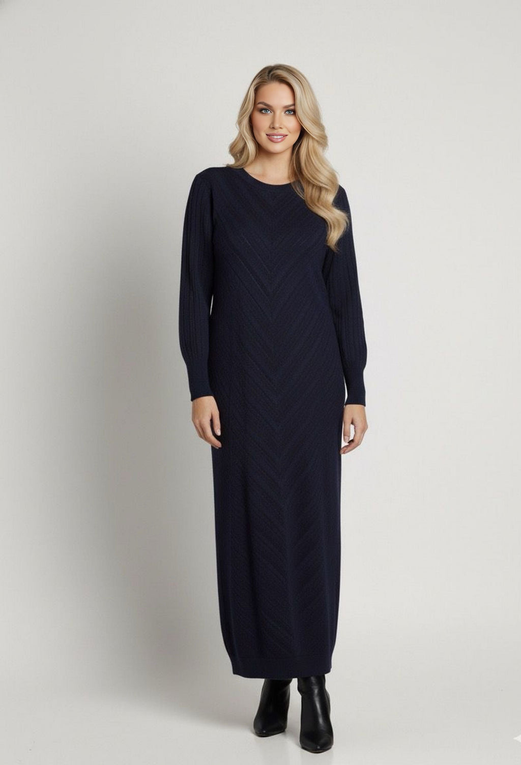 ZYF Aygen Knitted Winter Dress Navy Blue