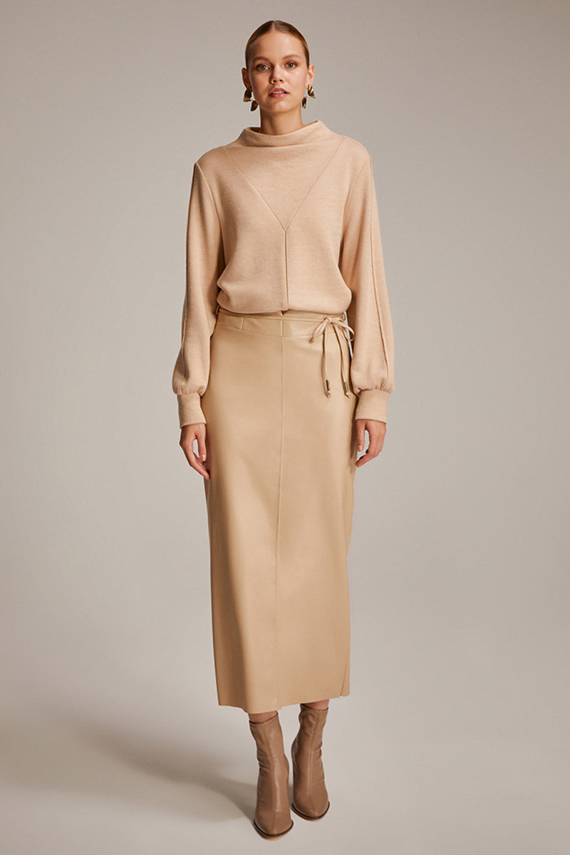 HK Leather Pencil Skirt Beige