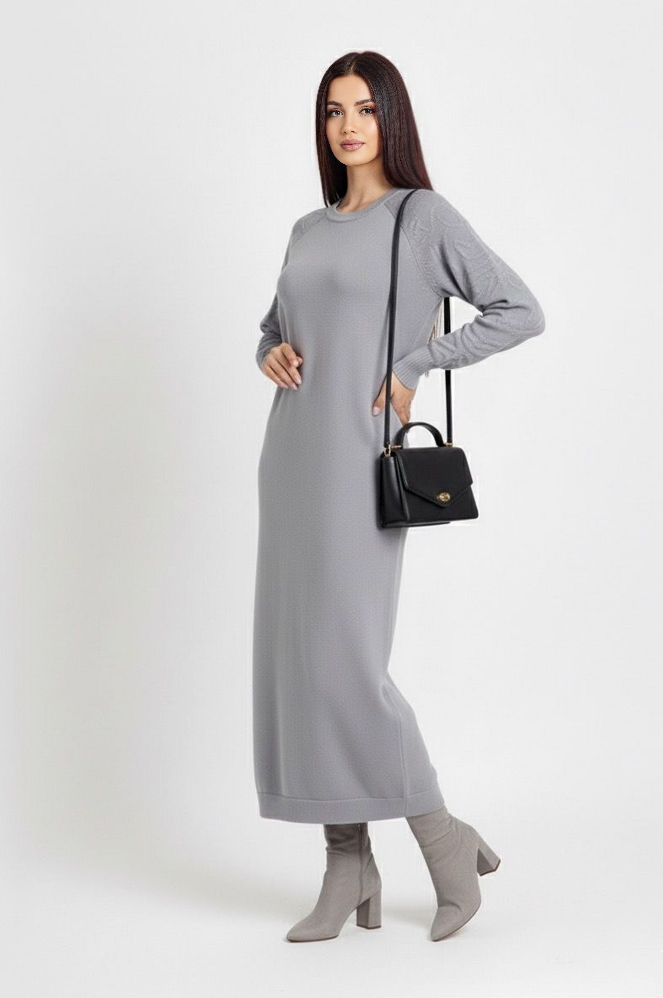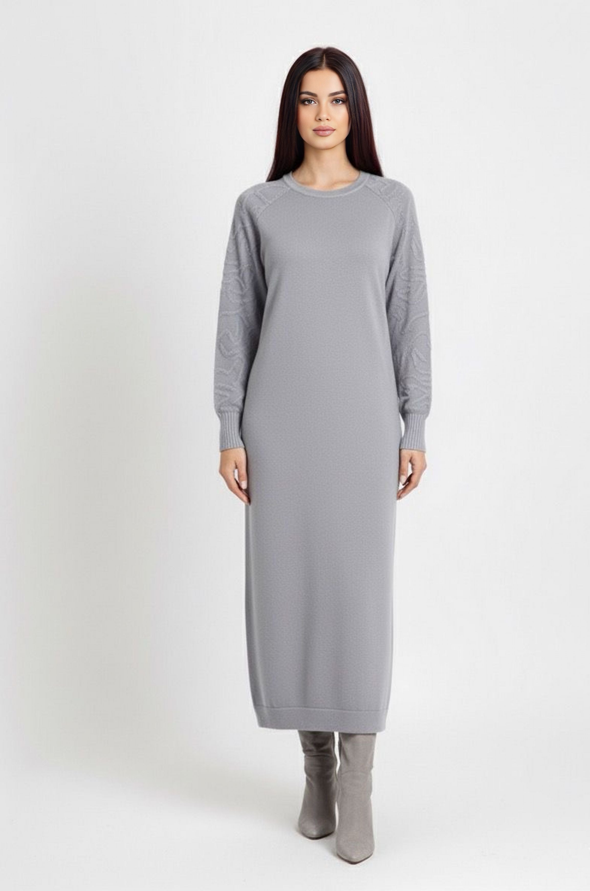 ZYF Alaz Knitted Winter Dress Light Gray
