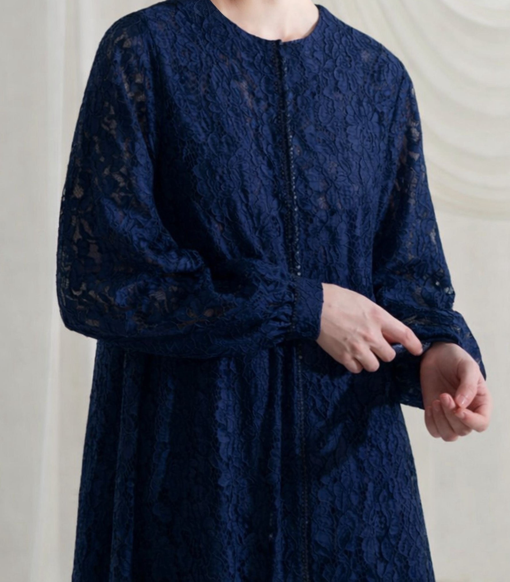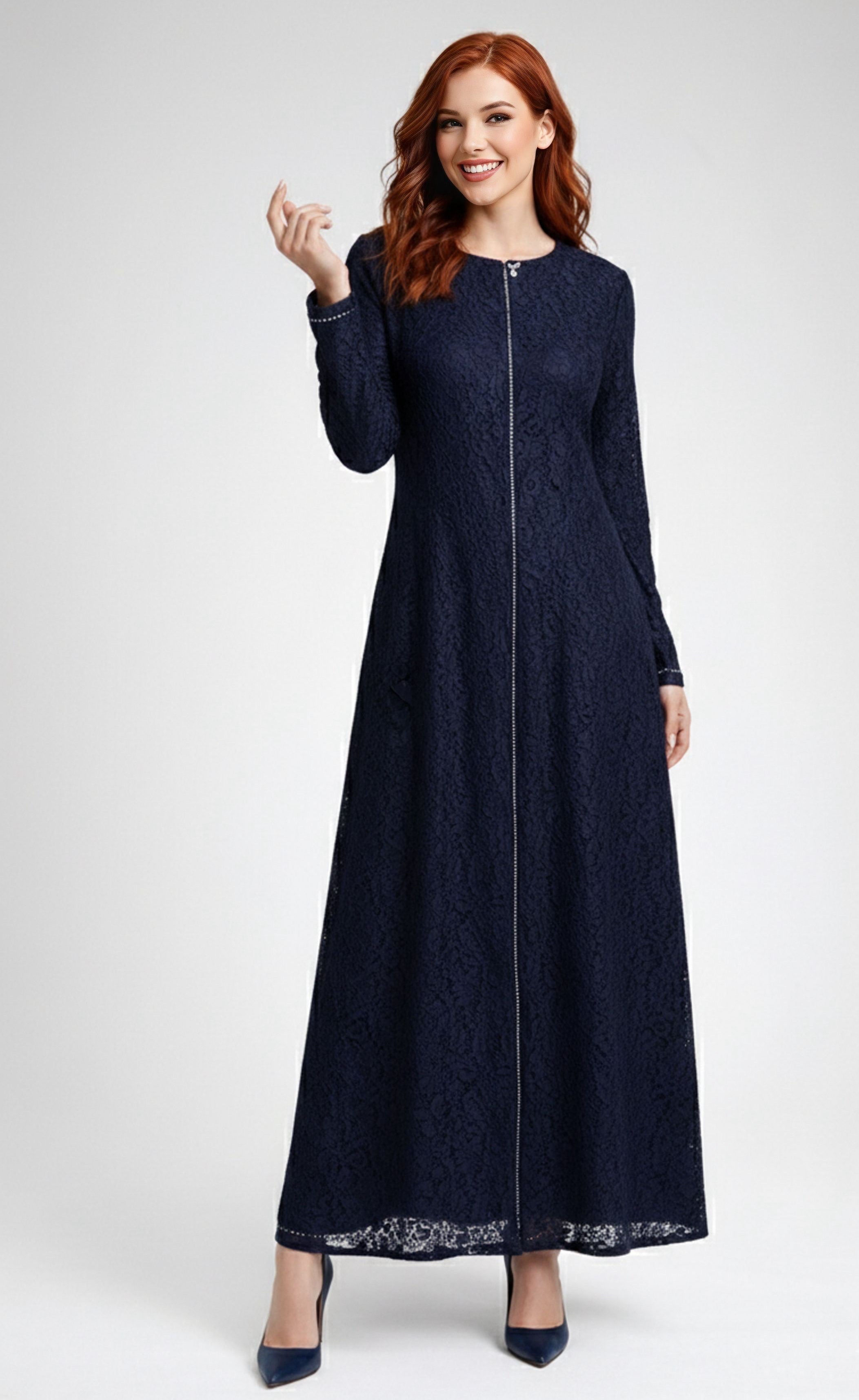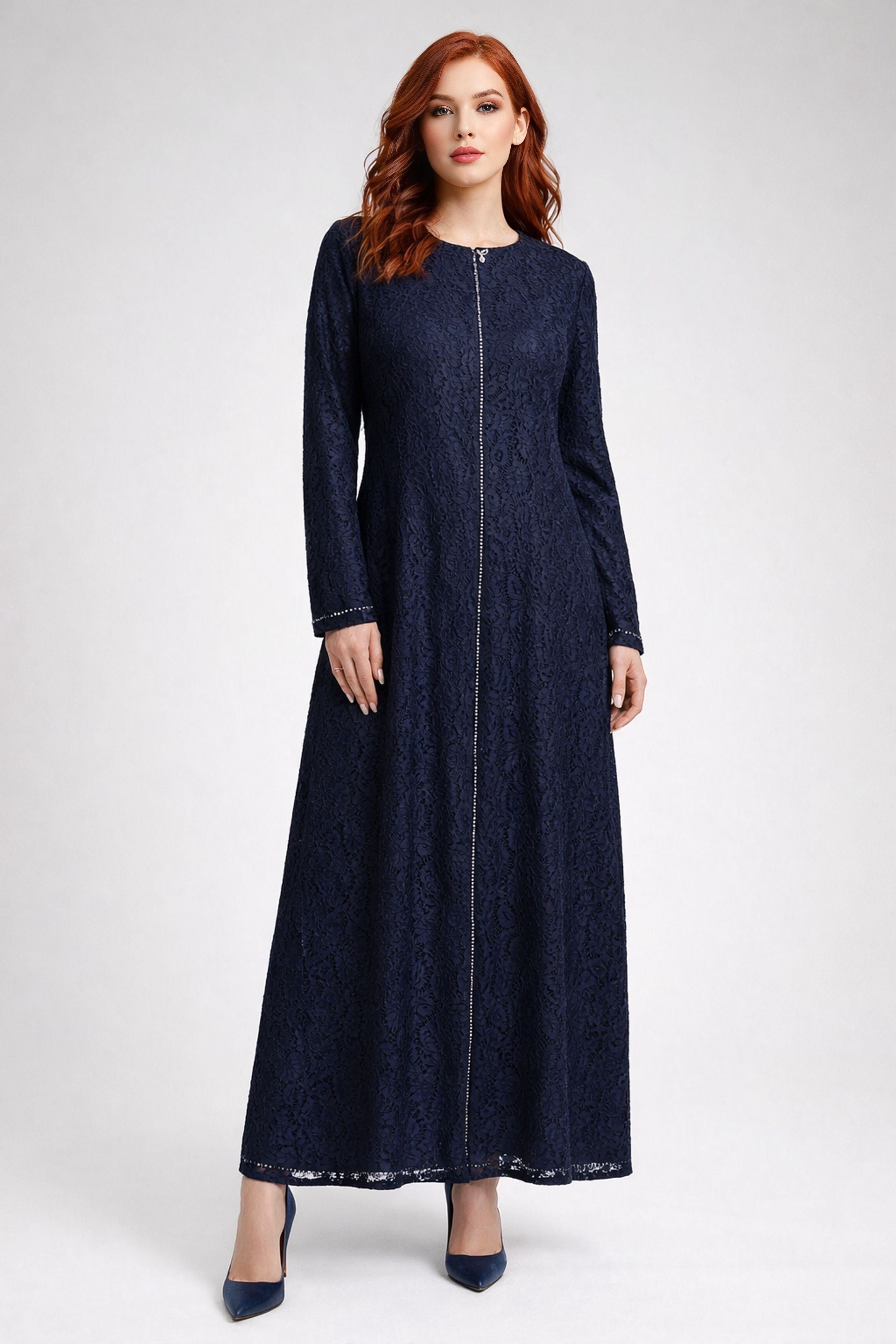 ETC All Lace Abaya With Zipper Navy Blue