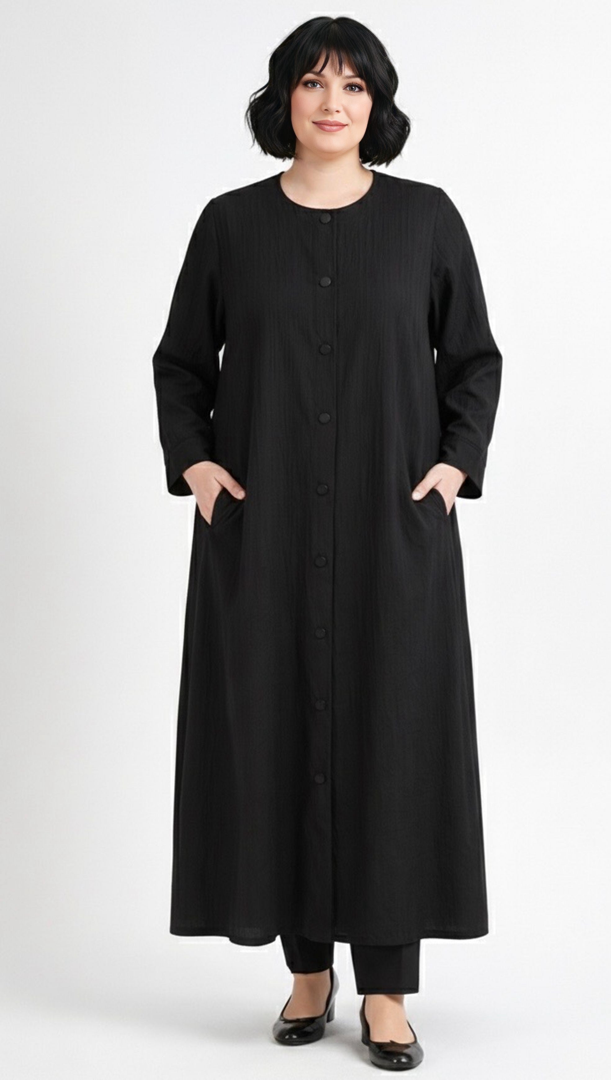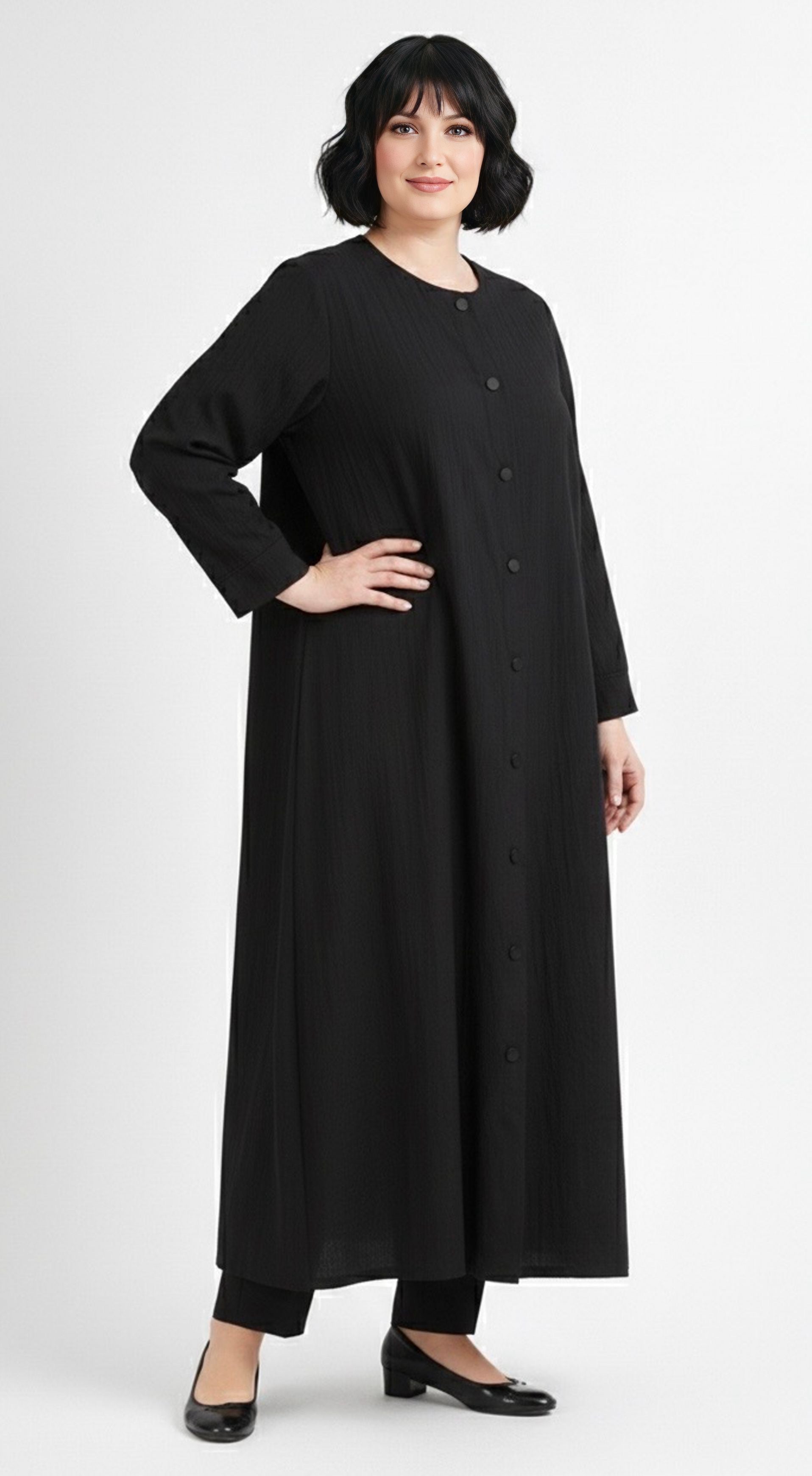HSN Hasbiye Plus Size Long Abaya Black
