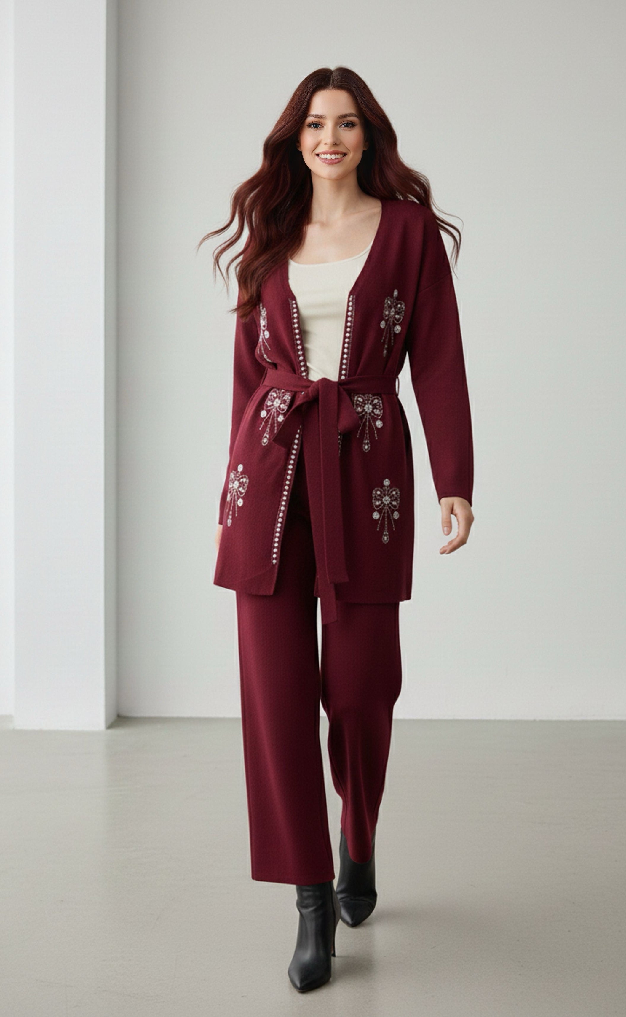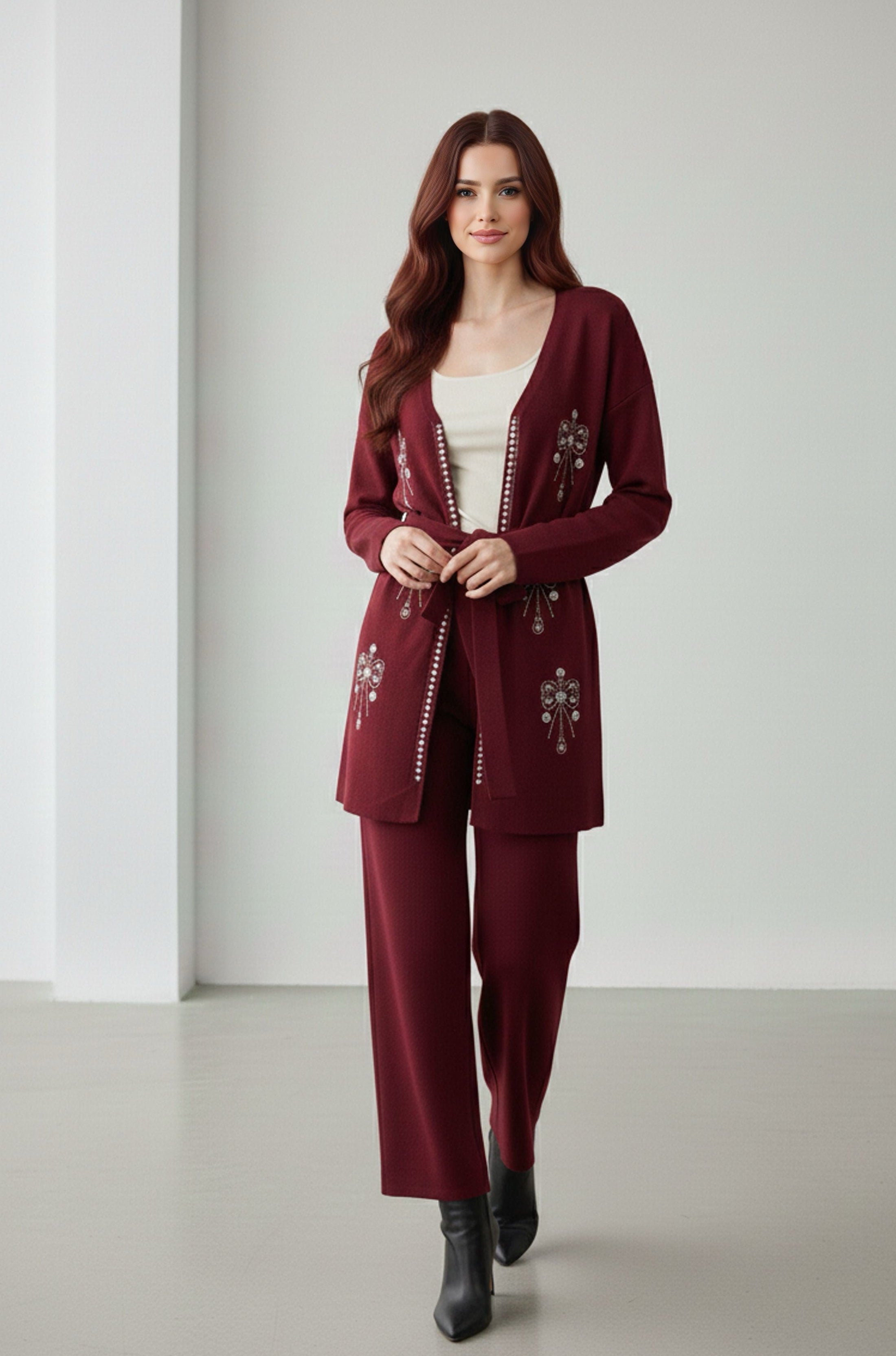 AYS Pearl Knitted Set Burgundy