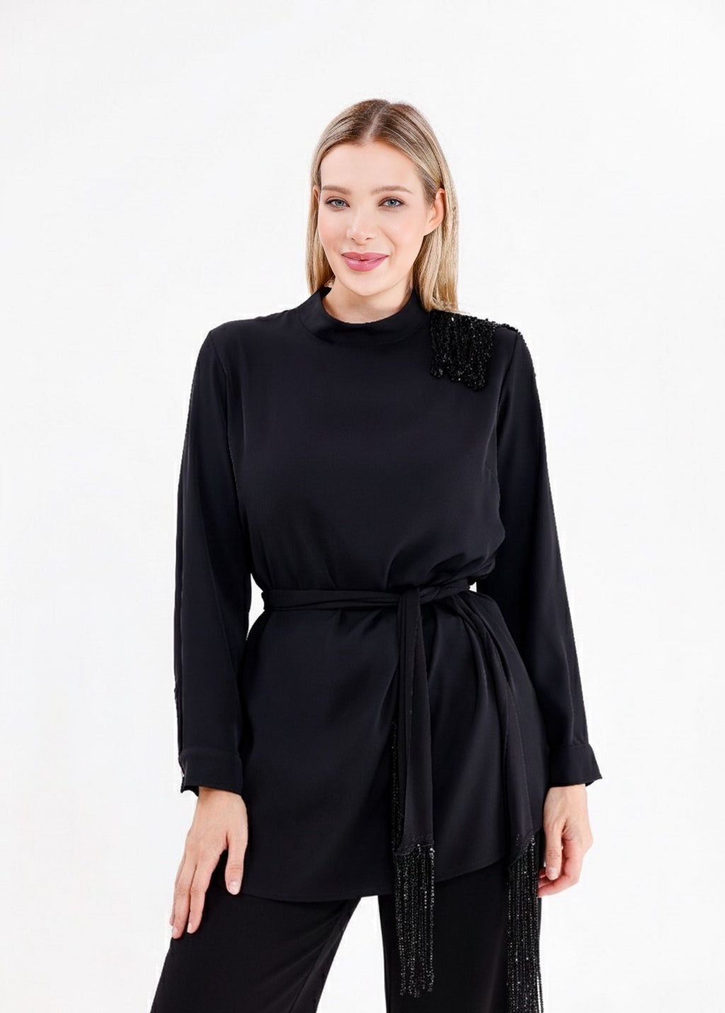 F&G Shawl Detailed Tunic Black