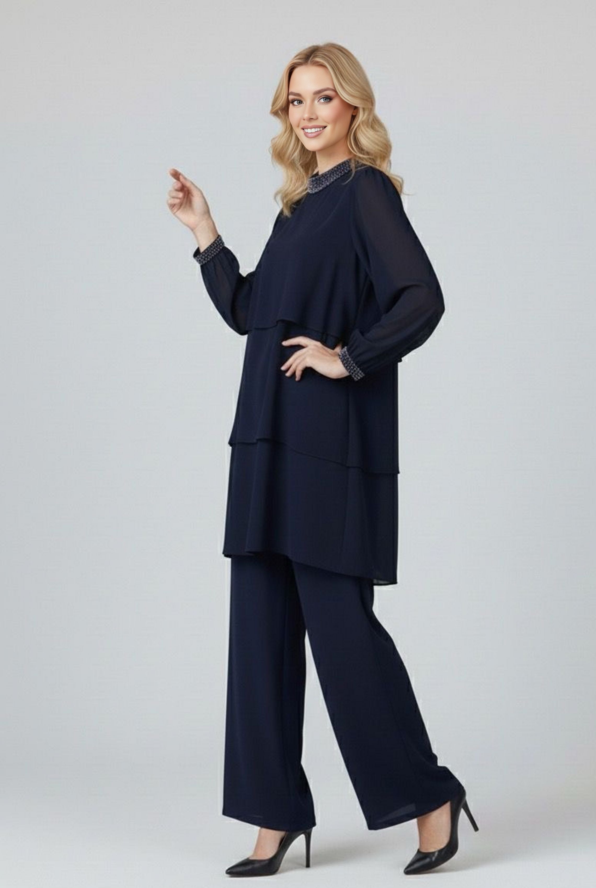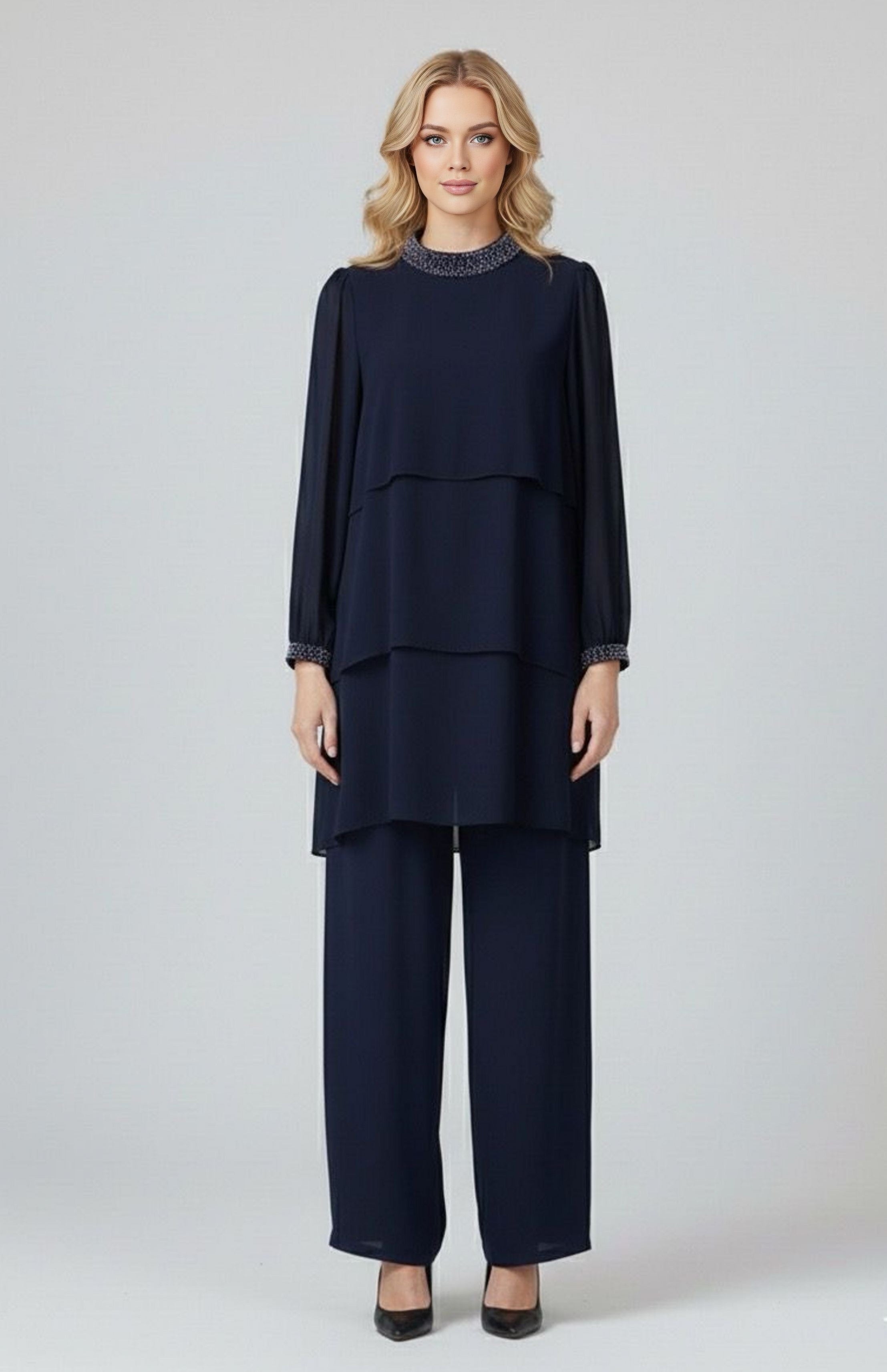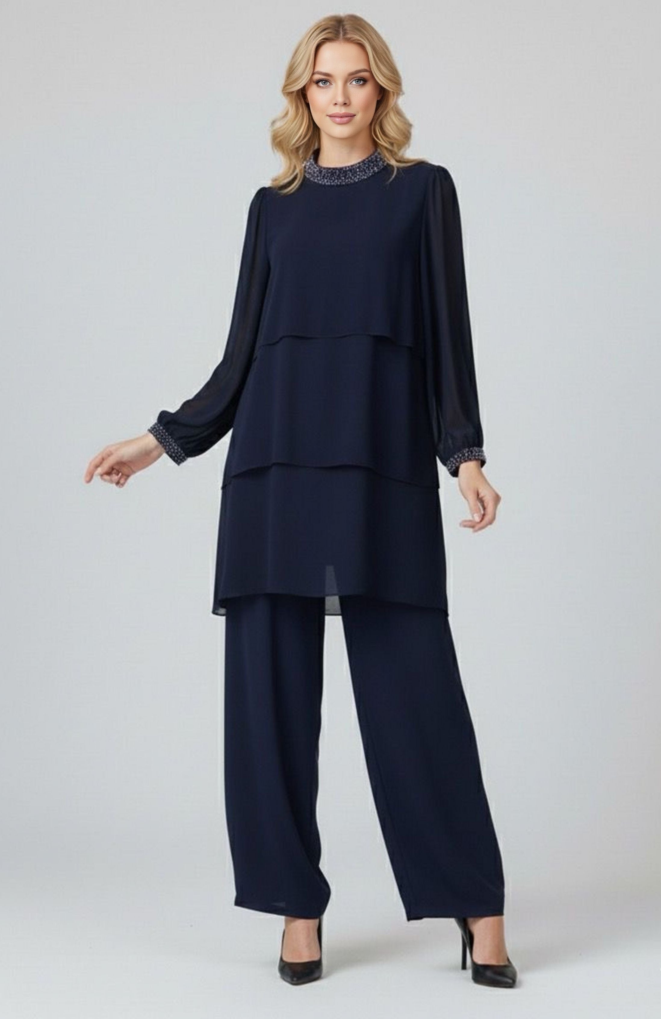 T&N Gulizar 2 Pc Chiffon Set Navy Blue