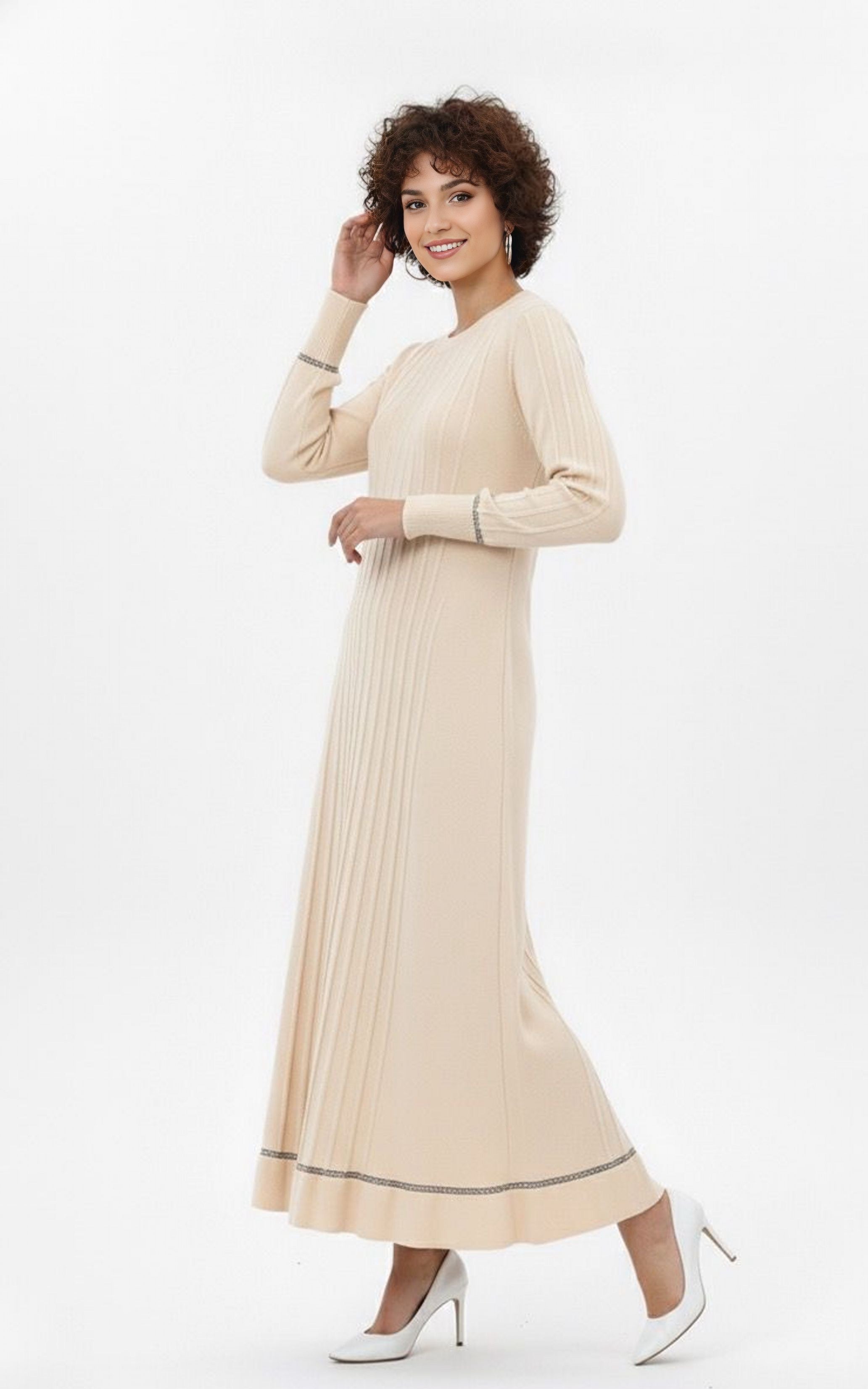 ZZ Binnur Knitted Winter Dress Cream