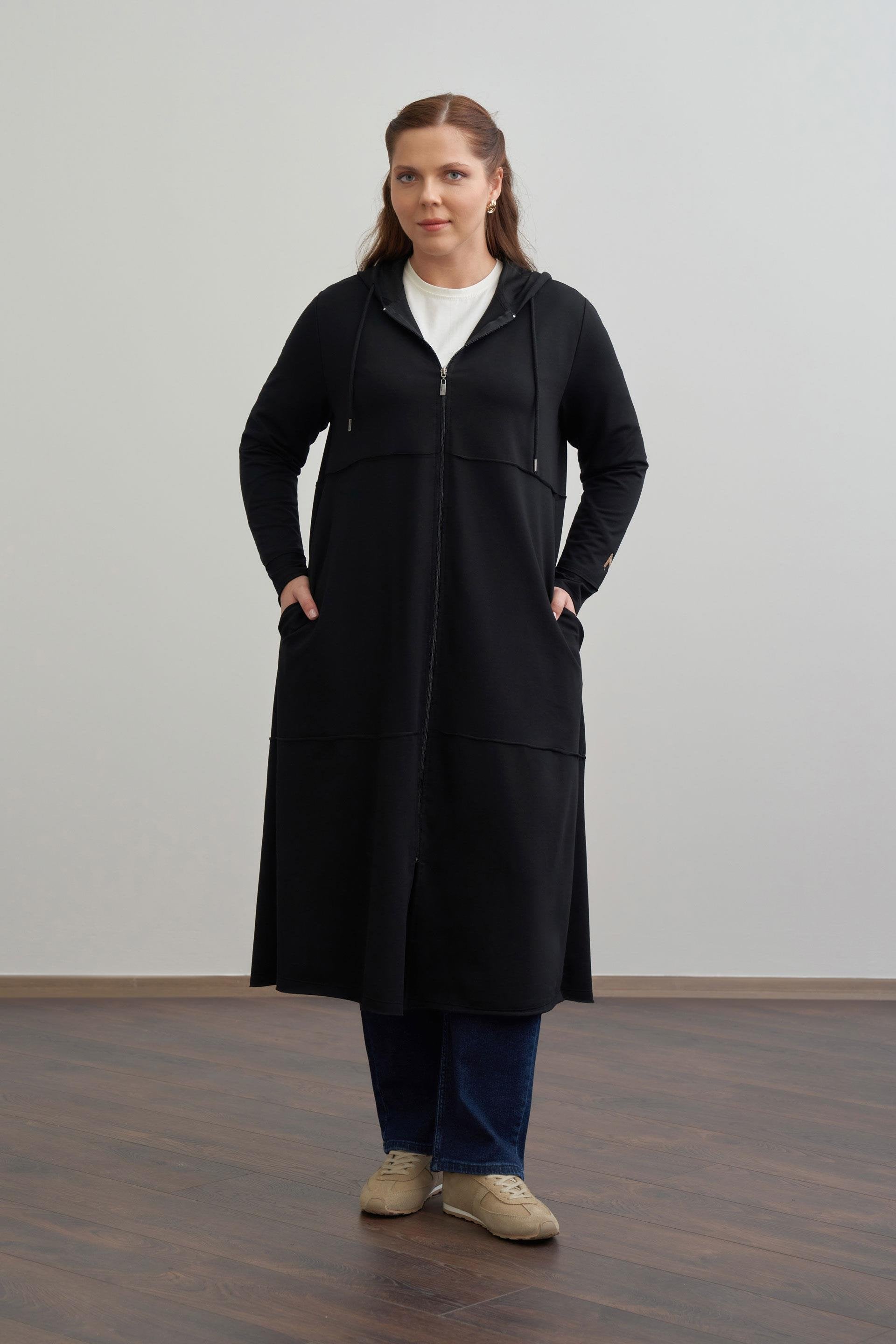 All Plus Size Hoodie Zipup Cape Black