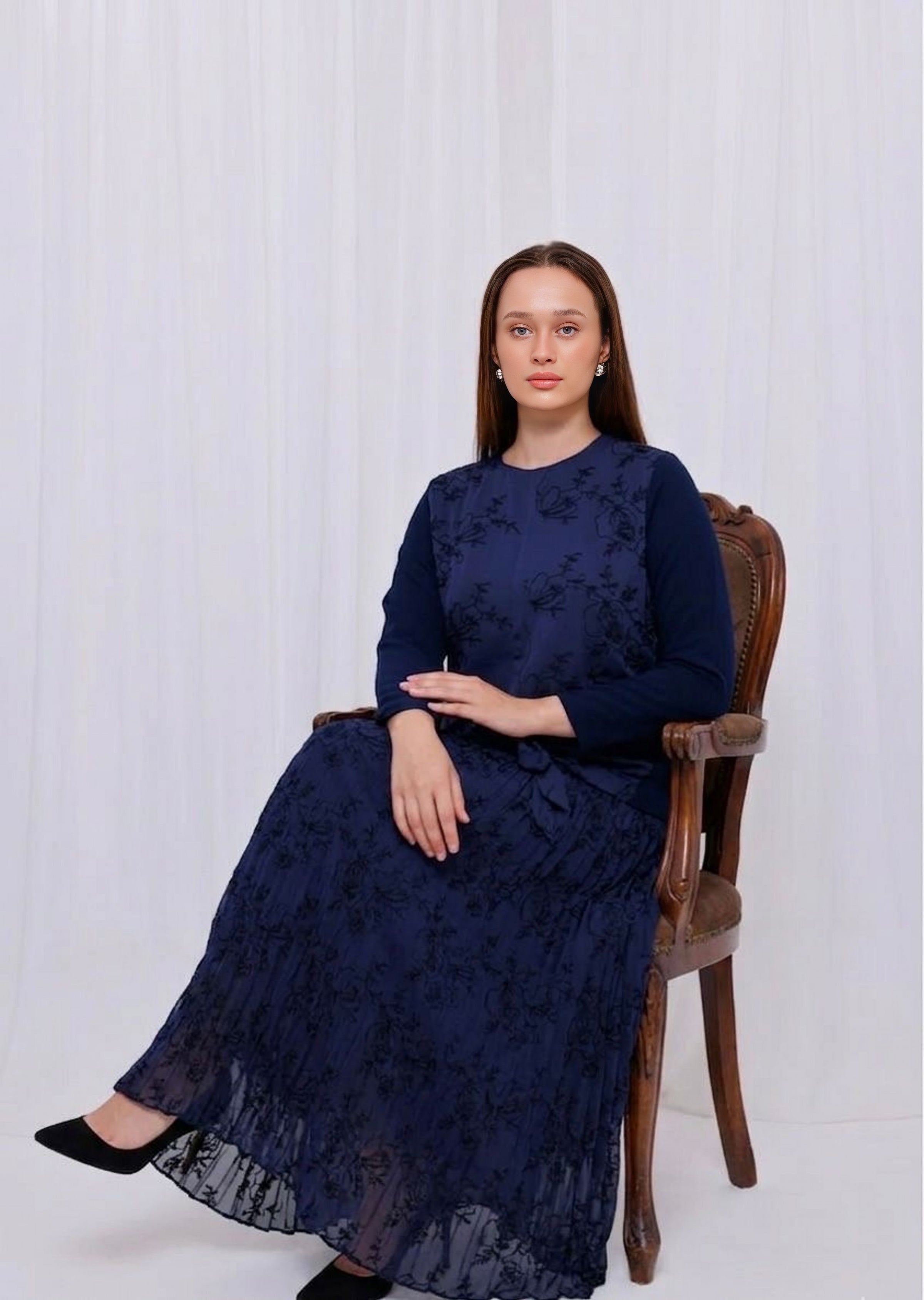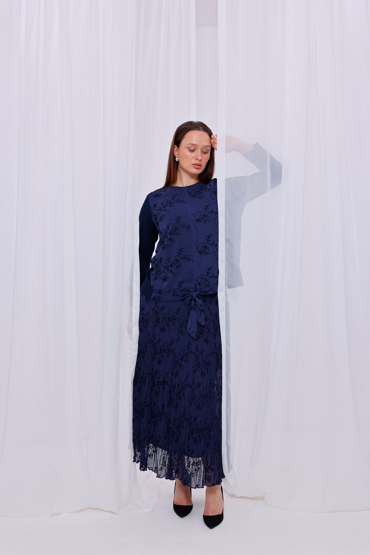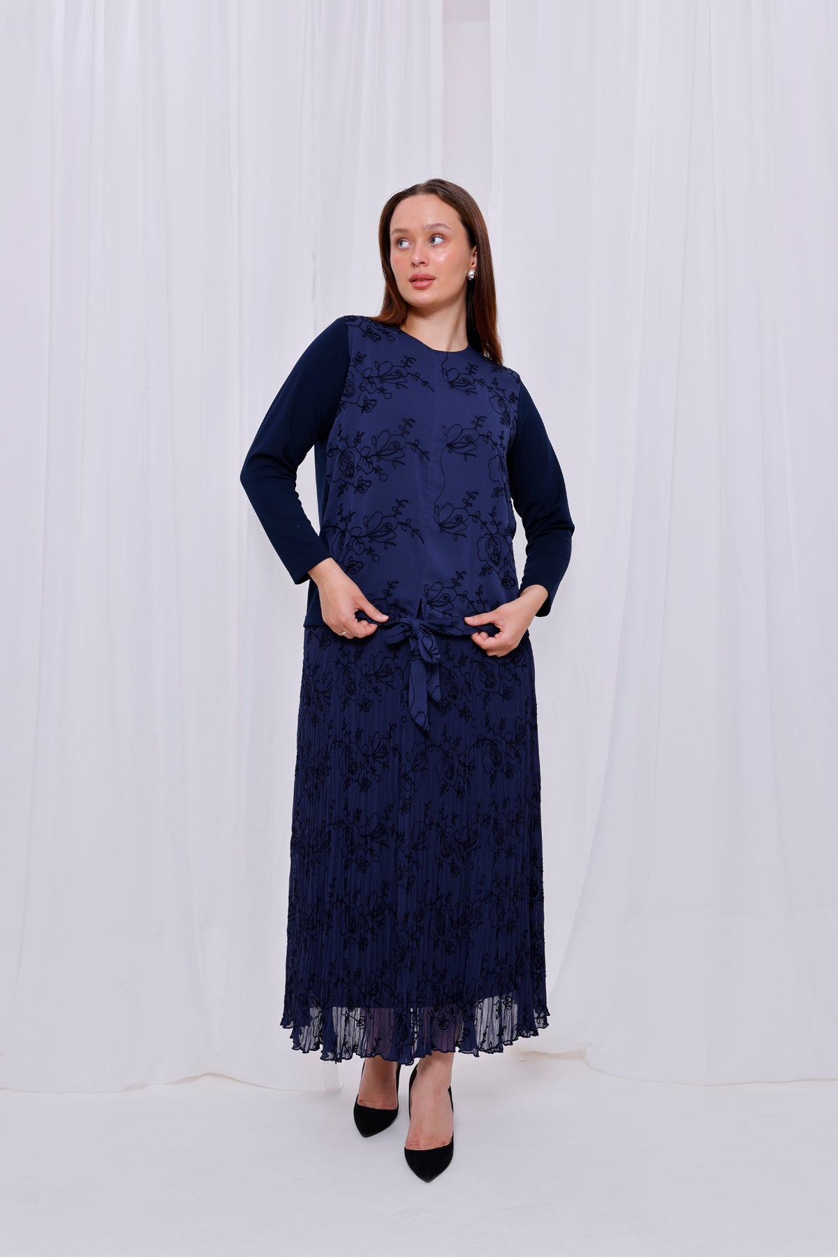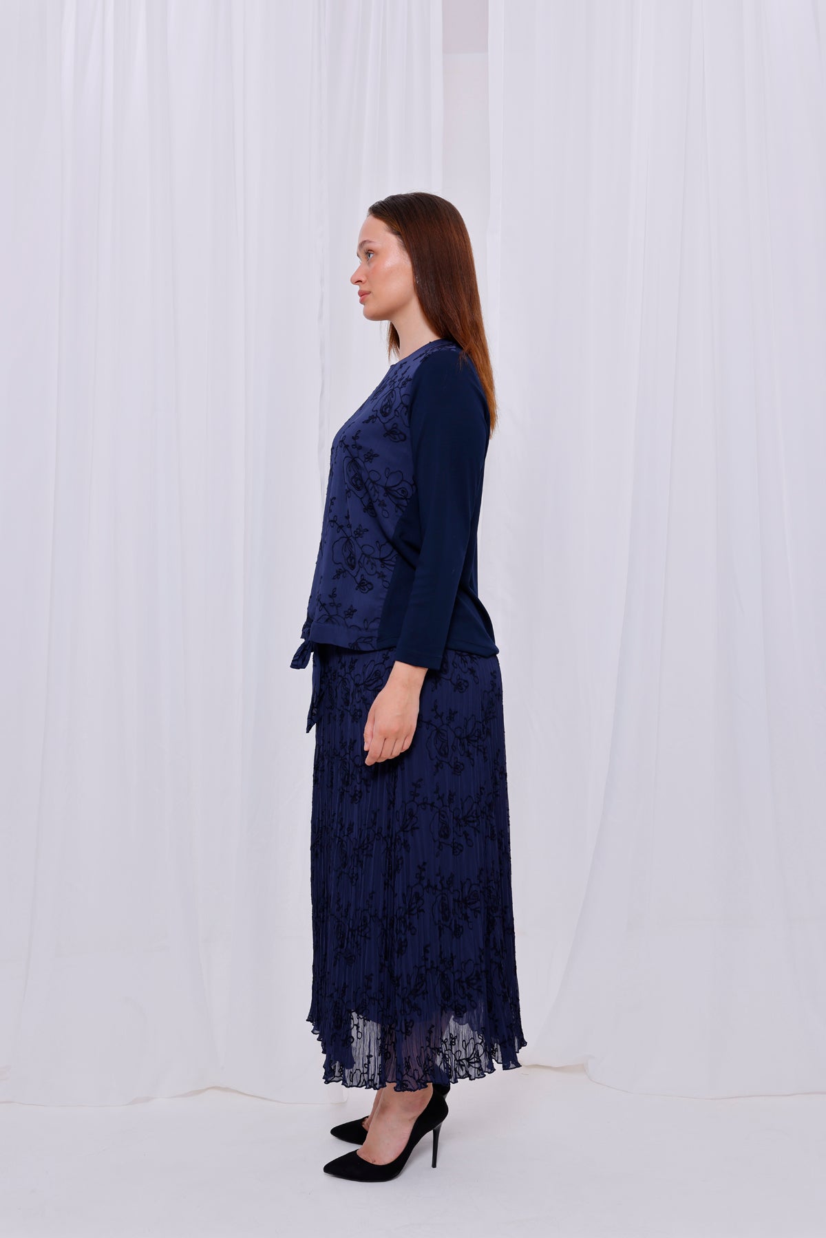 FUAT GURSEN Chiffon Embroidery Set Navy Blue