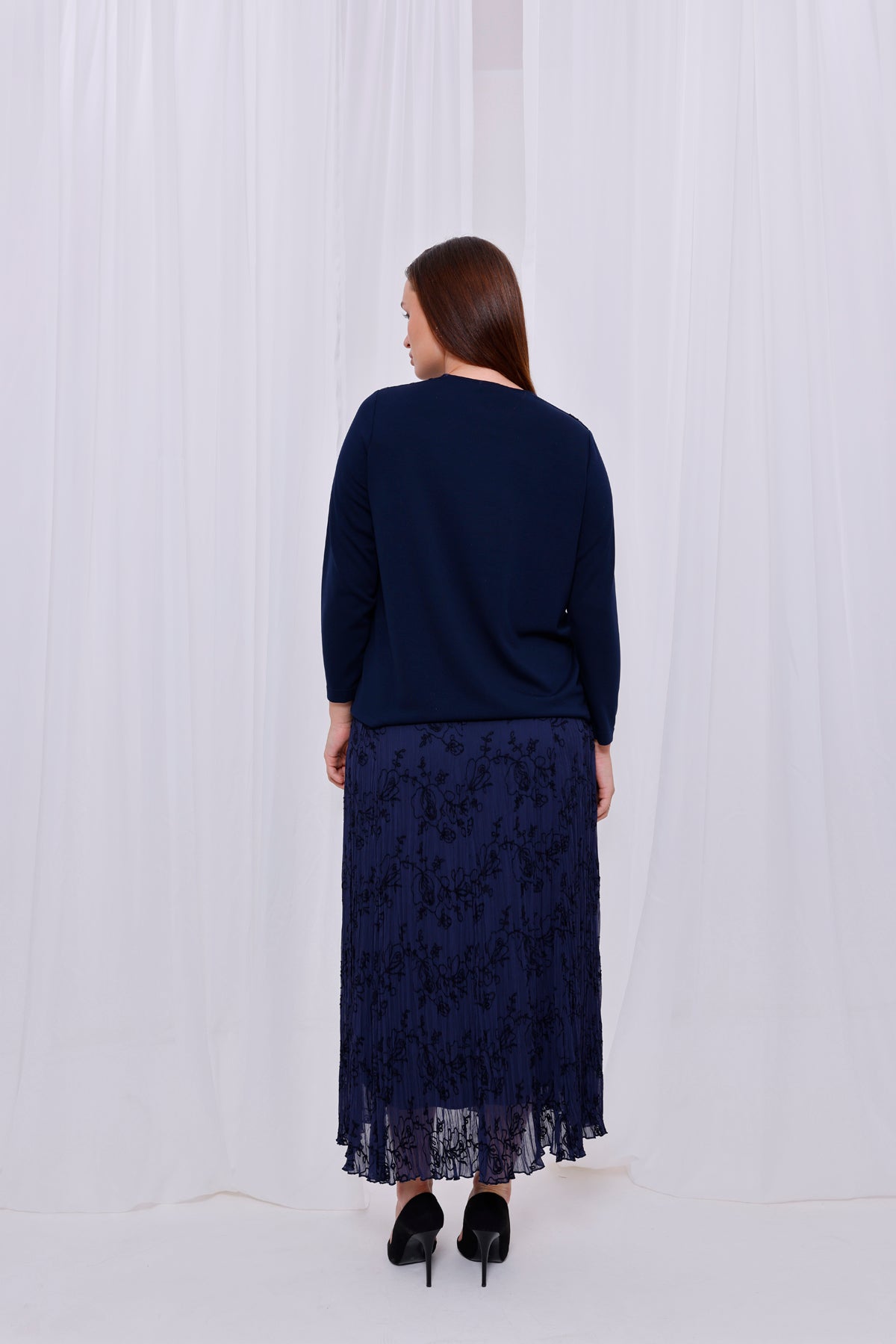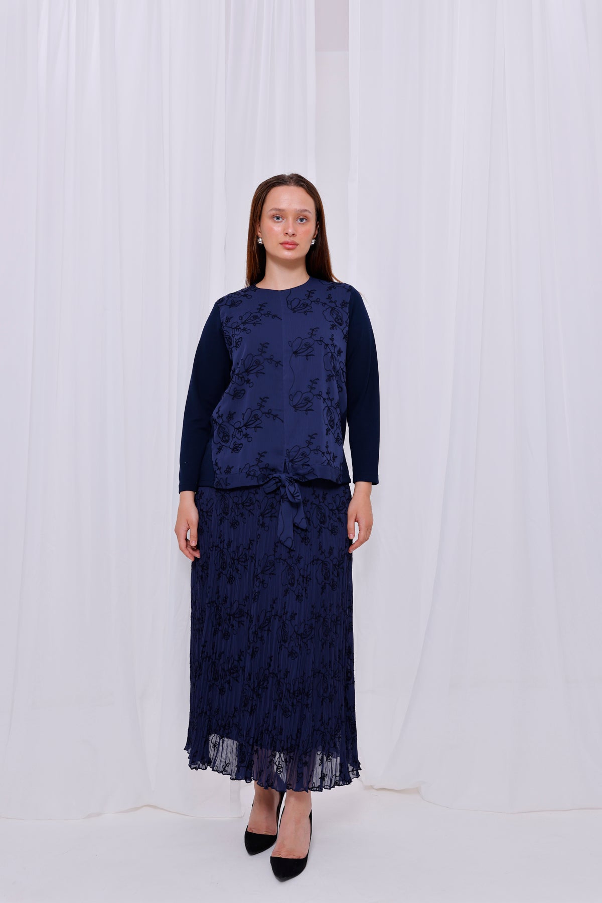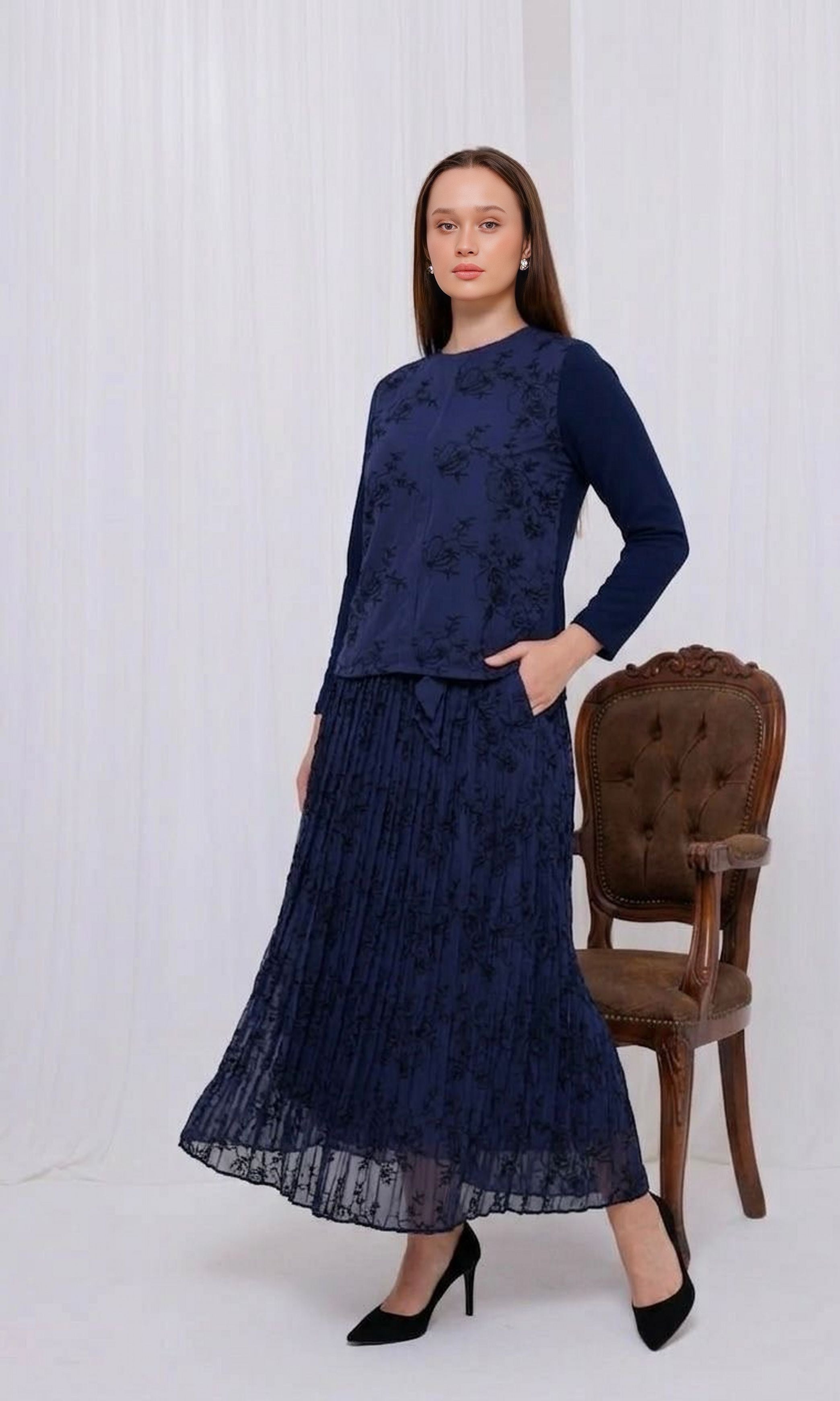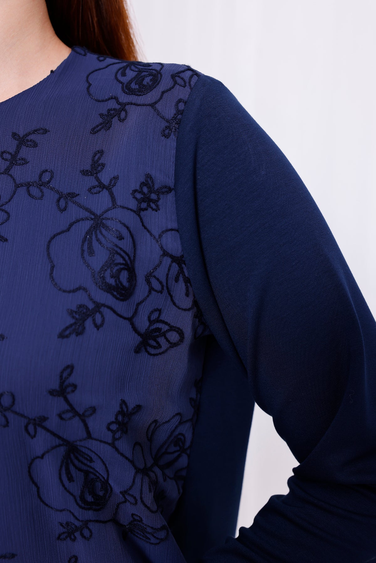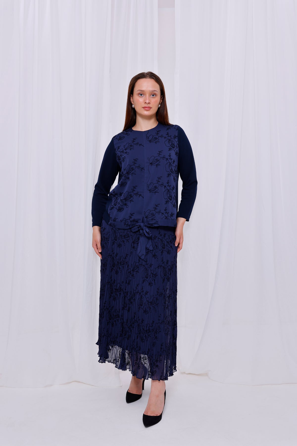 FUAT GURSEN Chiffon Embroidery Set Navy Blue