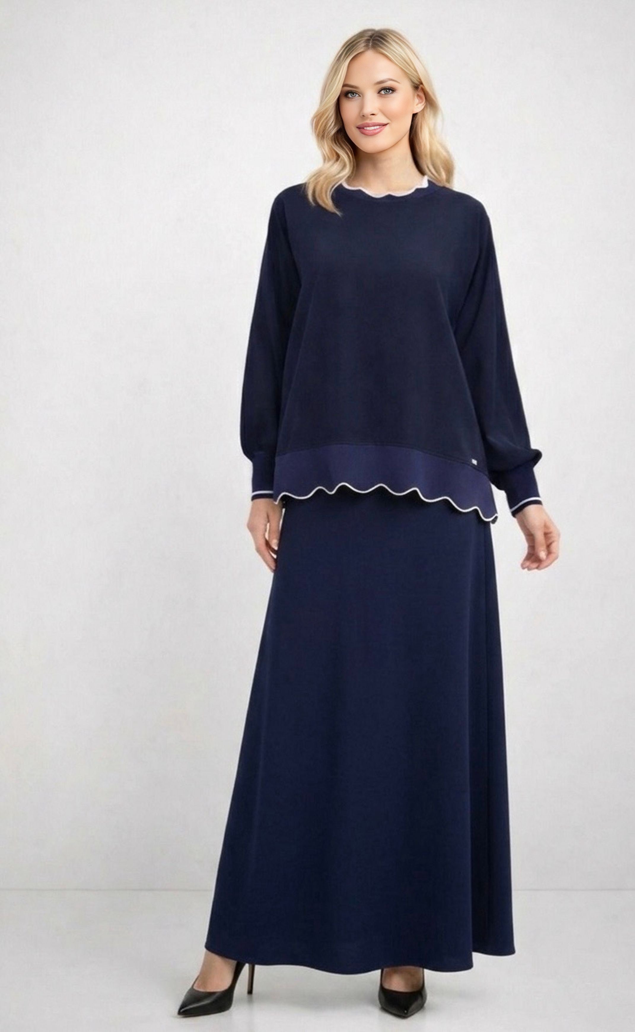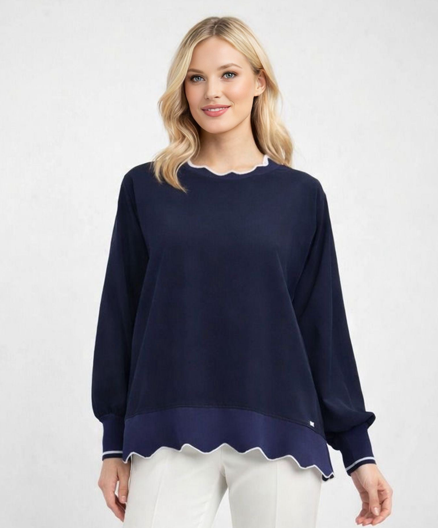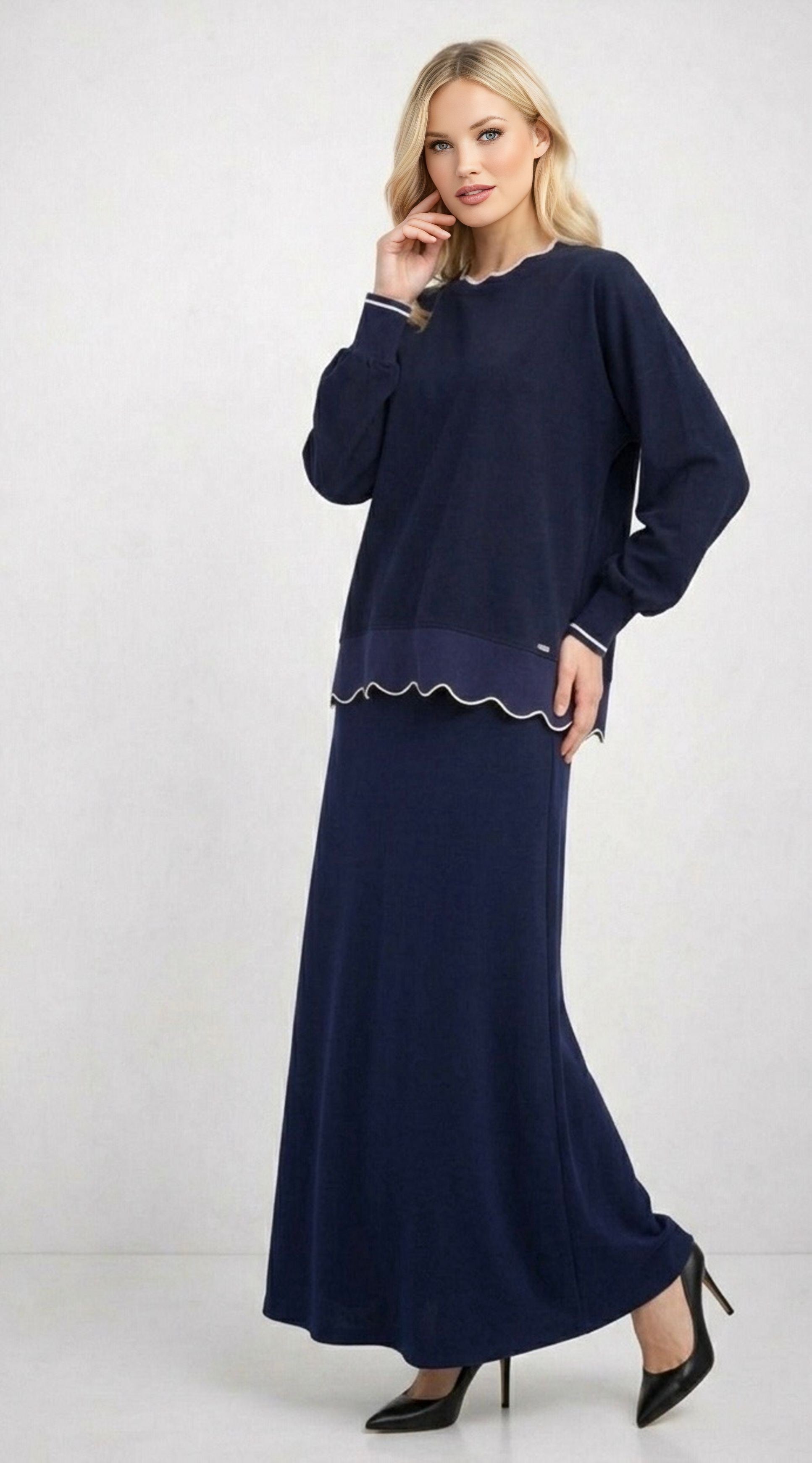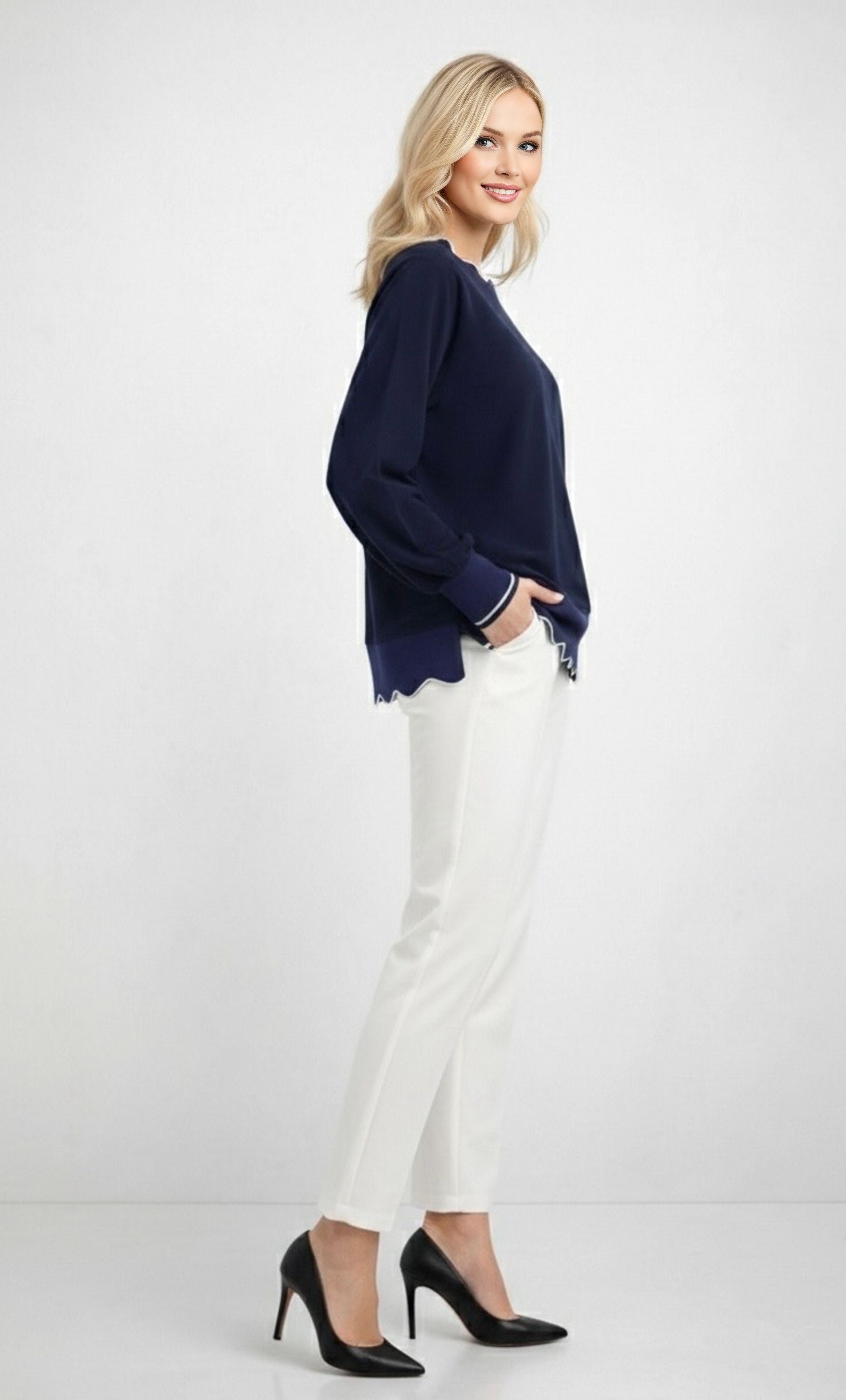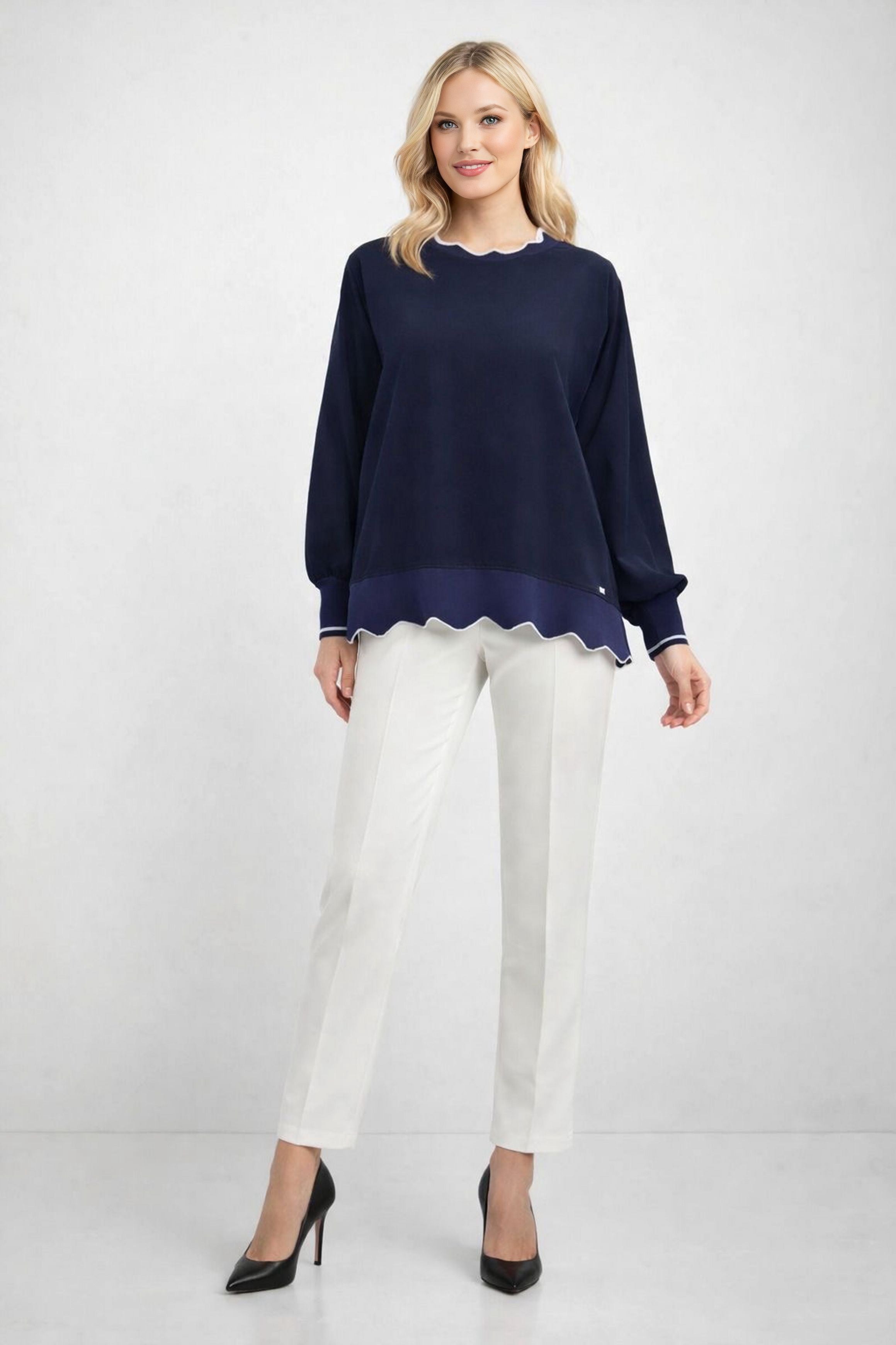 GHISA Crop Top Blouse Navy Blue