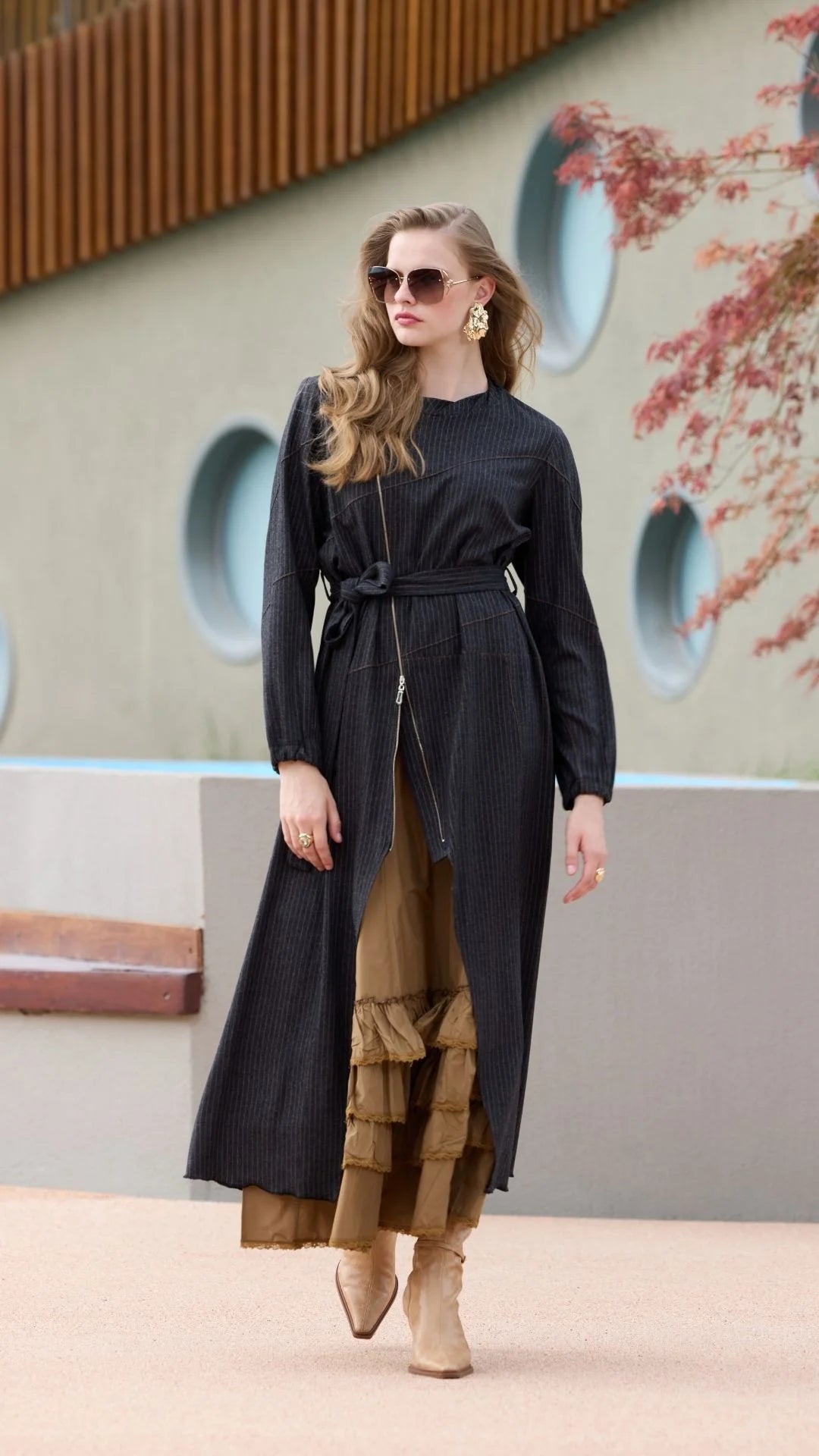 MissWhence 38812 2 Pc Dress Set Black&Camel
