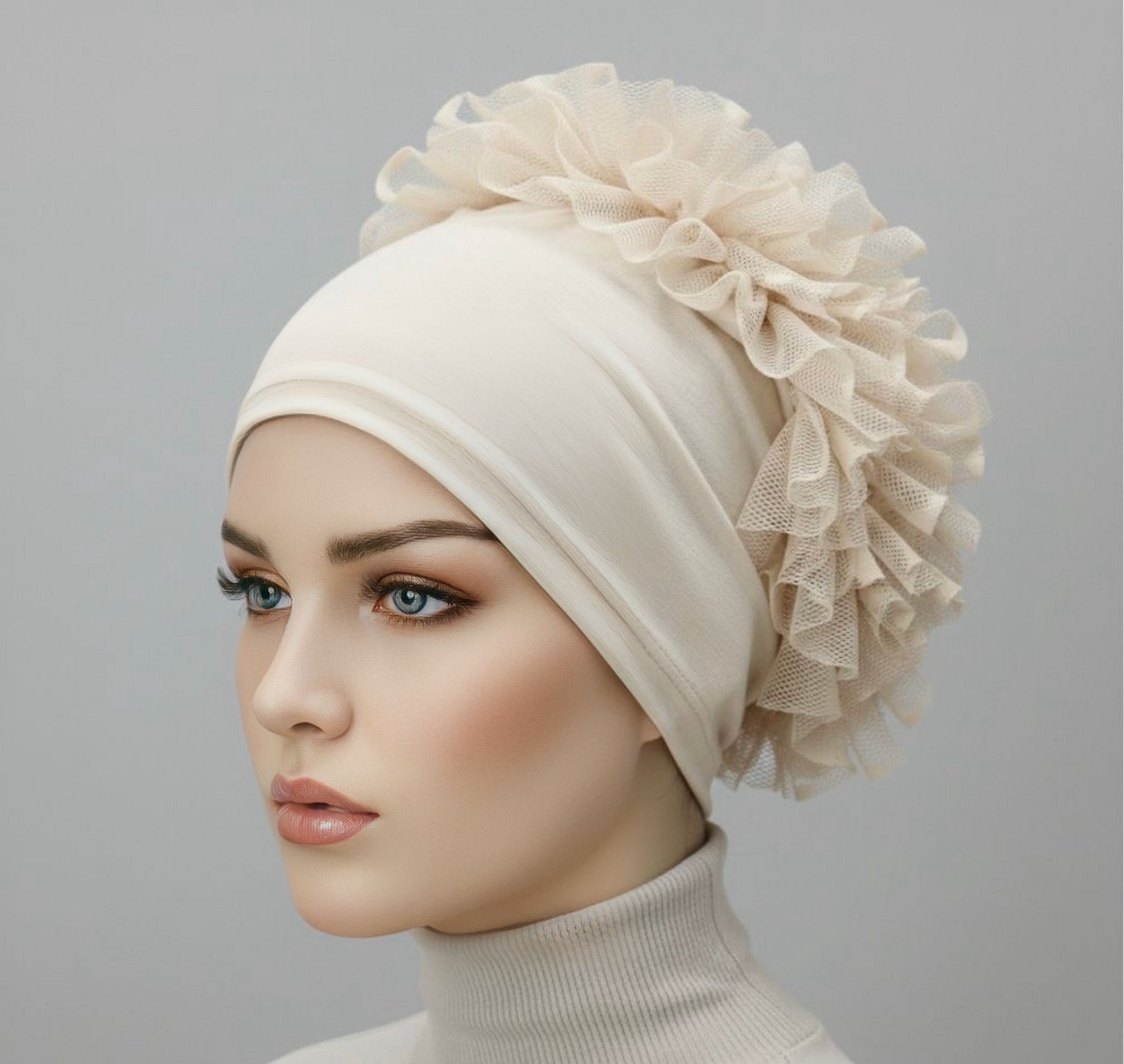 N&C Ruffle Bonnet Off White