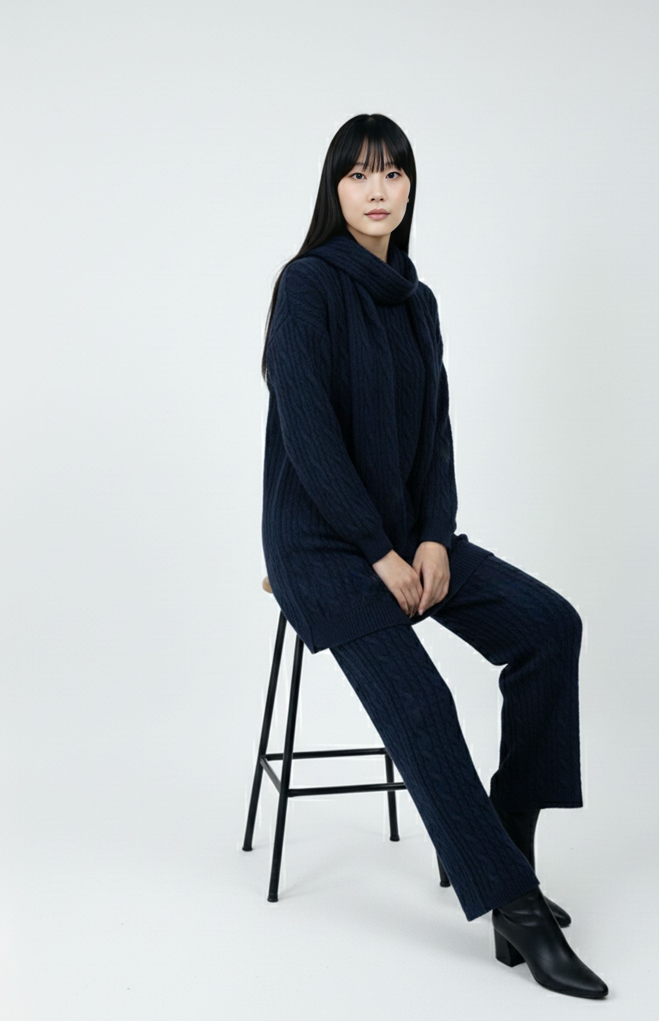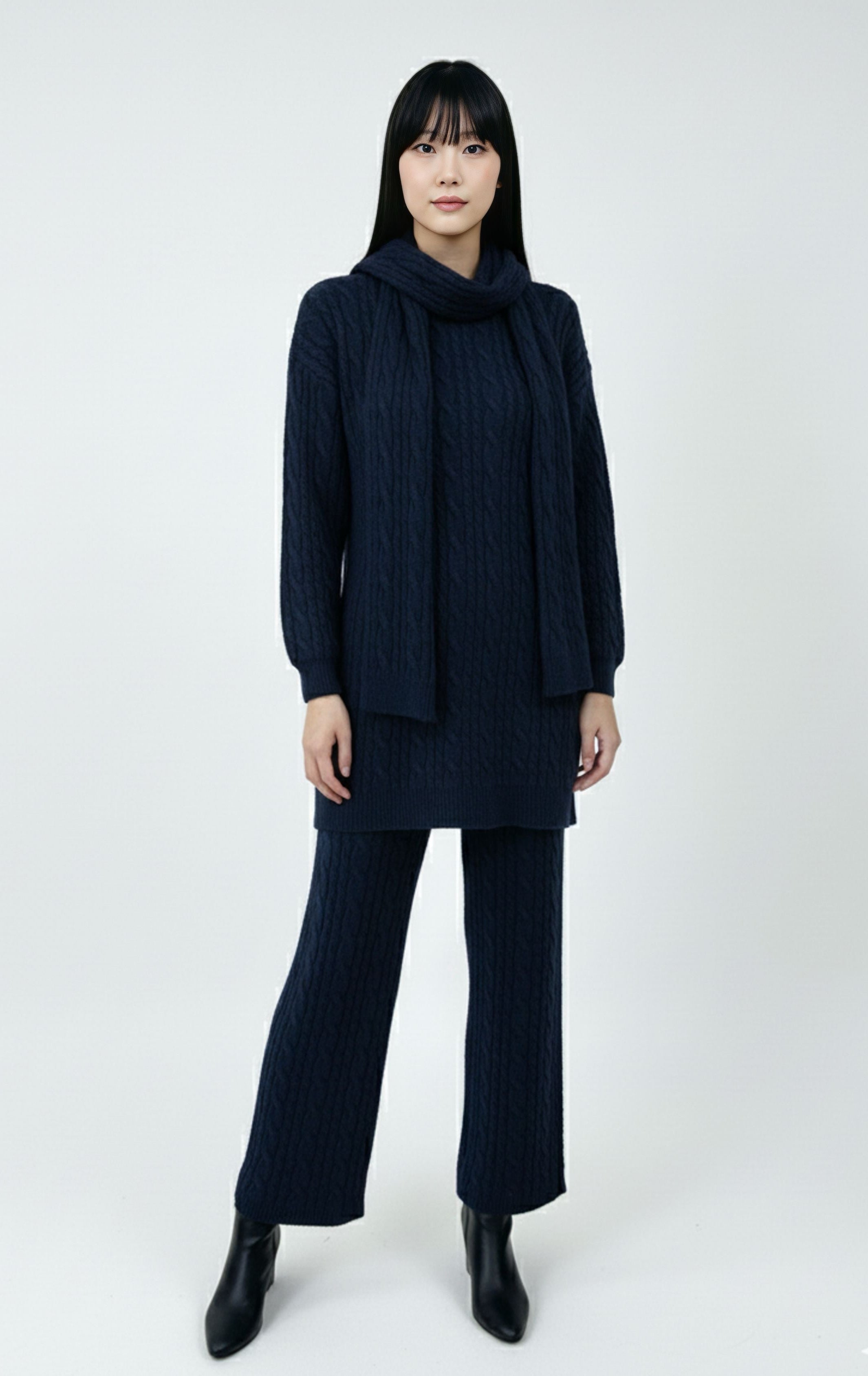 SCHZ Braid Knitted Set Navy Blue